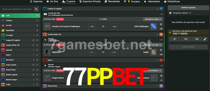 A aposta 77PPbet oferece aos jogadores a experiência mais conveniente de apostas em eSports!